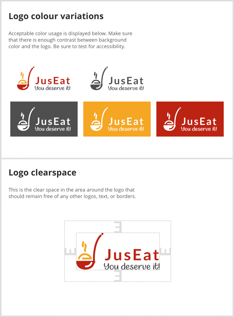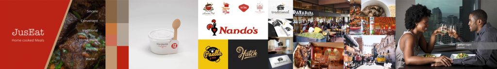 Vivid orange: Orange is associated with foods that are wholesome and satisfying, like bread, stew and potato products. Orange works very well with the JusEat brand as their entire menu consists of home-cooked meals.