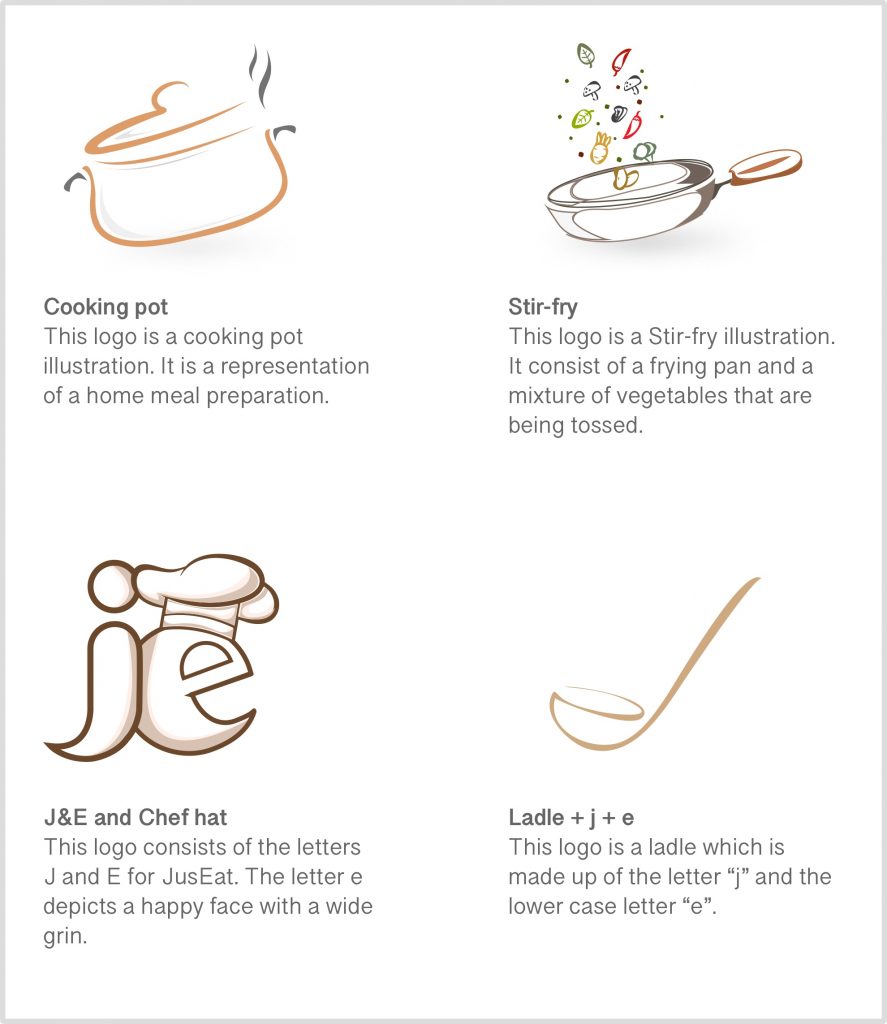 These are the initial designs of the JusEat logo. The client selected logo number 4, they appreciated the visibility of the letter “e” and “j” in the logo. They also liked the use of a ladle in the logo because they served home-cooked meals.