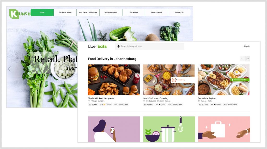 JusEat is competing in the home-cooked meal category. They are targetting working-class South African’s who want a home-cooked meal that can be ordered online. There are many companies that prepare home-cooked meals in South Africa, I searched for the competition online to see what their branding looked like so that I know exactly what I am competing against.